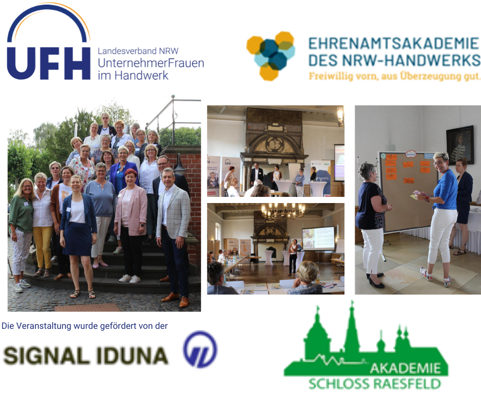 In das wunderschöne Schloss Raesfeld als Standort der noch jungen Ehrenamtsakademie des Handwerk NRW und Akademie des Handwerks wurden die UnternehmerFrauen aus NRW mit Unterstützung der SIGNAL IDUNA als Sponsor eingeladen und sorgten für einen lebhaften und gewinnbringenden Austausch.