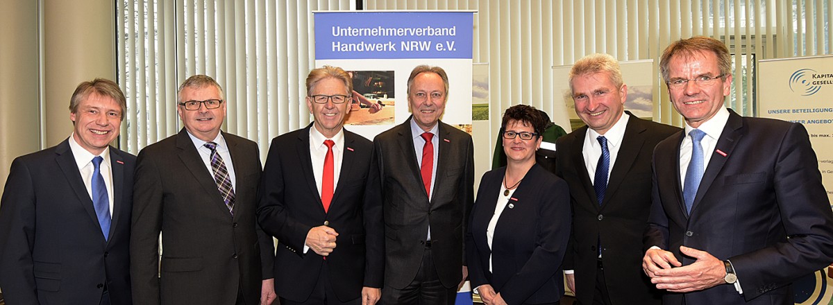 UFH Bundesvorsitzende Heidi Kluth mit Frauen aus NRW, Präsident ZDH Hans Peter Wollseifer, Präsident des Handwerkstags NRW Andreas Ehlert
