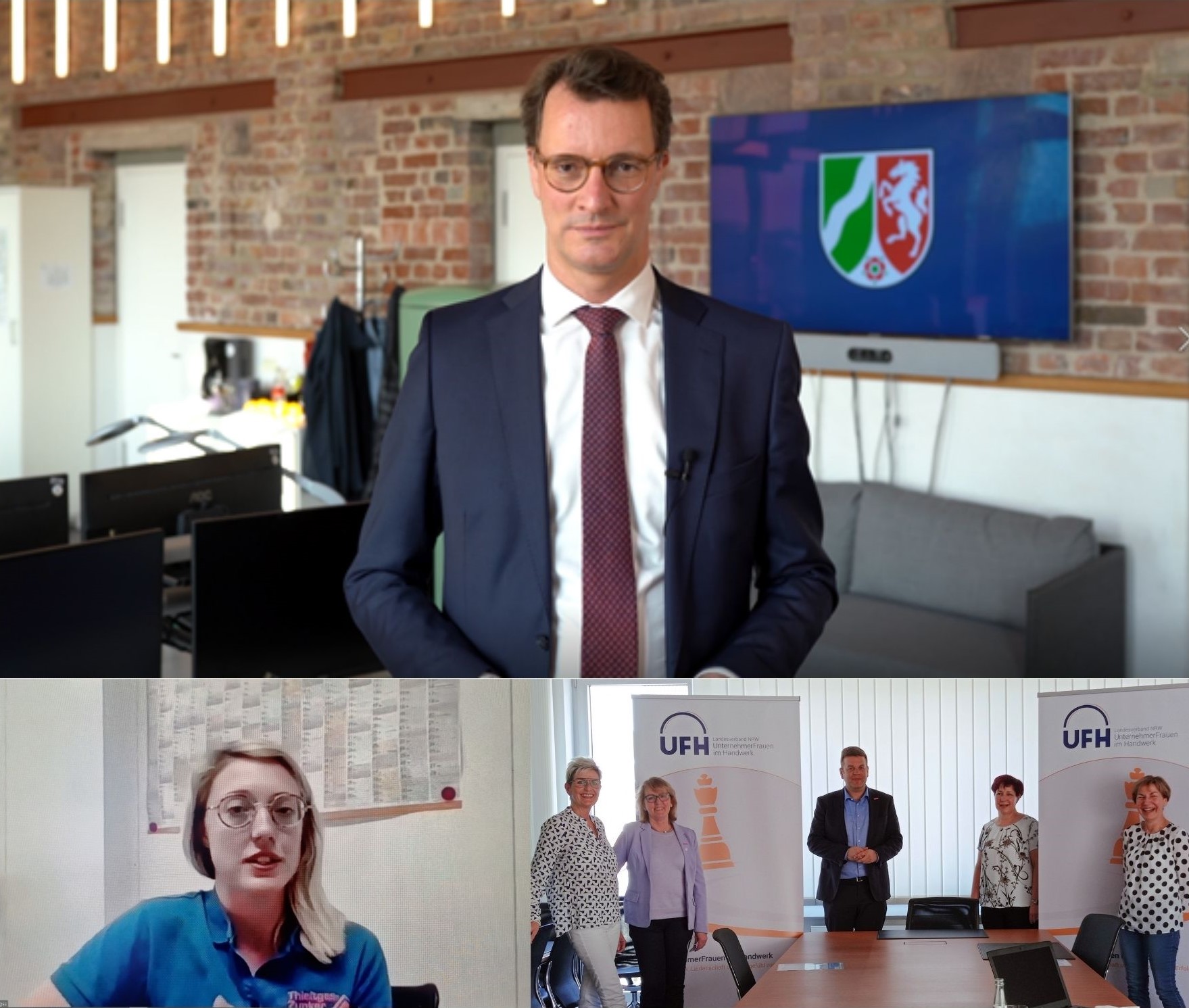 Im Rahmen einer Talkrunde tauschten sich dann die UFH- Bundesvorsitzende Heidi Kluth, ZDH-Präsident Hans Peter Wollseifer und Andreas Ehlert, Präsident des Handwerkstages Nordrhein-Westfalen, über die Maßnahmen aus, die das Handwerk erfolgreich machen. Wichtige Themen sind hier unter anderem die Stärkung der dualen Ausbildung, die Novelle der Handwerksordnung sowie der Abbau der Bürokratiebelastungen für die Betriebe.