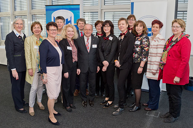 vorne v.l. Tatjana Lanvermann Borken ( UFH NRW Vorsitzende), Elia Albrecht–Mainz (Bürgermeisterin Stadt Oberhausen), Bernd Sarnow (Signal Iduna), Elke de Witt (UFH AK Mülheim-Oberhausen), Juana Bleker (UFH NRW Vorstand), Gabriele Poth (HWK Düsseldorf), UFH AK Mülheim-Oberhausen