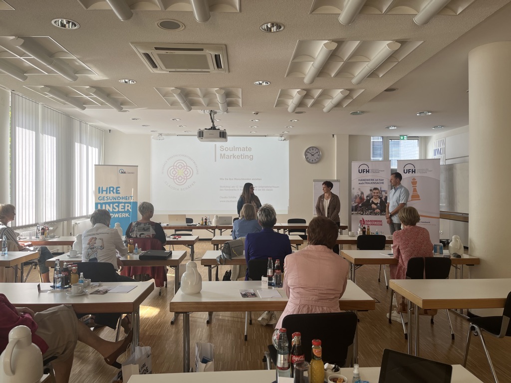 Nach der Begrüßung durch die Organisatorin Julia Kramer von der IKK classic sowie Juana Bleker, die Landesvorsitzende der UnternehmerFrauen im Handwerk NRW, begann die Veranstaltung mit wertvollen Erkenntnissen und inspirierenden Anregungen in einem äußerst aktuellen Themenbereich.