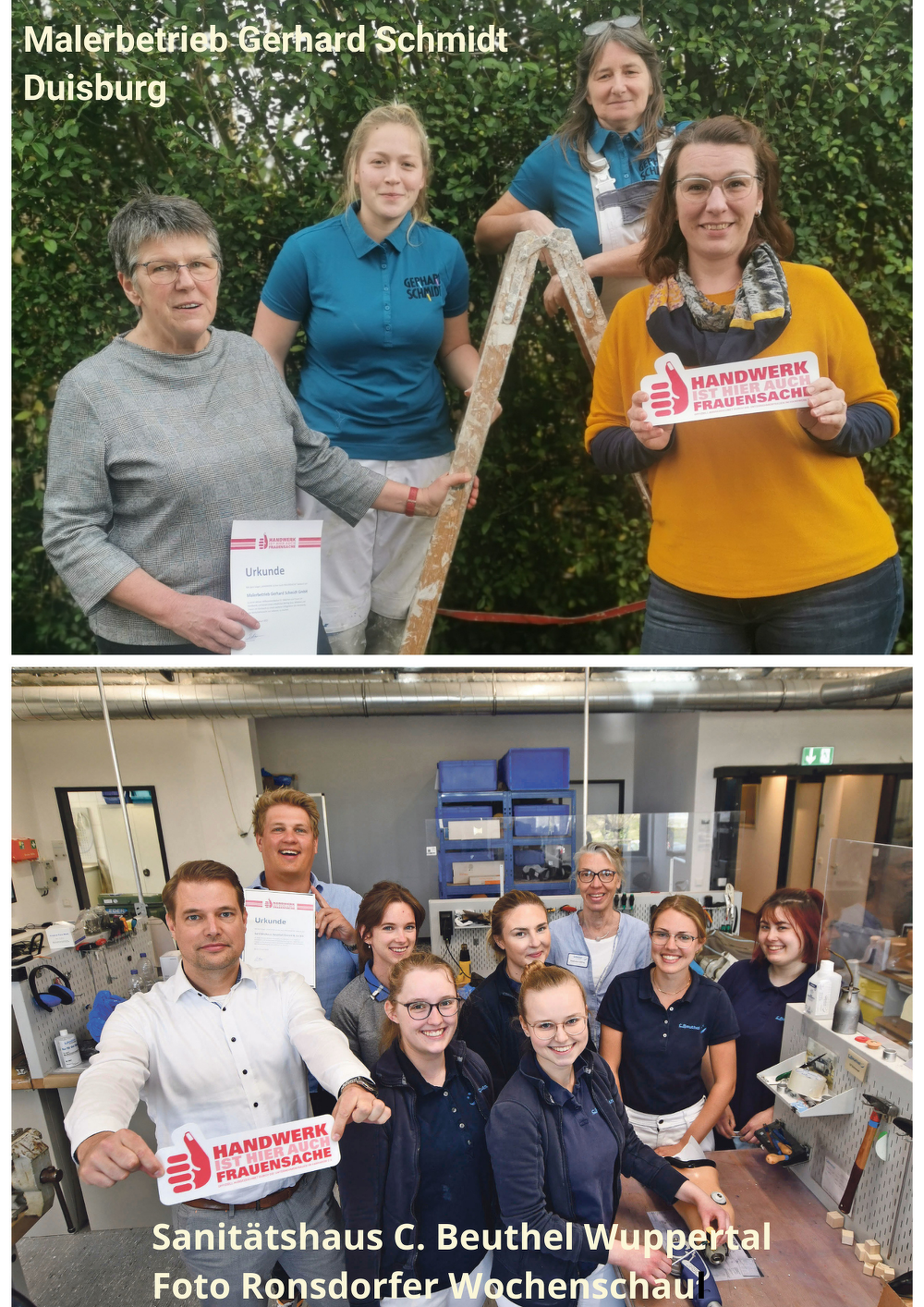 Lea Heuer ist Zimmerin und zeigt auf Instagram ihren Arbeitsalltag. So will sie mehr Sichtbarkeit für Frauen im Handwerk schaffen und für andere die Hemmschwelle senken, auch den Weg ins Handwerk zu gehen. Alice Brammertz ist Prokuristin und Dreh- und Angelpunkt bei der Schreinerei Brammertz. Zusammen mit ihrem Mann Eduard Brammertz setzt sie im Betrieb auf eine nachhaltige Unternehmensführung. Mit den Mitarbeitenden haben sie Werte des Unternehmens erarbeitet, zu dessen Erhalt alle gemeinsam beitragen. Die gemeinsame Zusammenarbeit wird im Betrieb großgeschrieben, dabei wird auf Generationen-Tandems gesetzt. Bei diesem Modell arbeiten ältere Mitarbeitende zusammen mit jüngeren Mitarbeitenden, das fördert den Wissenstransfer.